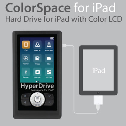 HyperDrive ColorSpace является медиацентром, созданным специально для планшетного компьютера iPad.Отличительная особенность данного девайса это встроенный жесткий диск. Подключается iPad при помощи Camera Connection Kit, в рамках синхронизации двух устройств имеется возможность получать доступ к хранящимся на медиацентре файлам, прямо на экране планшетника. Например, если вам необходимо сохранить резервные копии файлов, вы легко сможете воспользоваться этим устройством.
