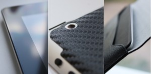 Если есть желание при переноске защитить iPad 2 полностью, то ниже будет описание аксессуара, который в этом очень помогает, а при домашнем использовании, например на гранях аппарат поцарапать или повредить довольно таки сложно, конечно при условии аккуратного обращения. Цена Carbon Skin Guard равна $20, но пока появится на родине, конечно, возрастёт вдвое. Помимо карбона в предложении имеются наклейки из белой, чёрной и коричневой кожи.