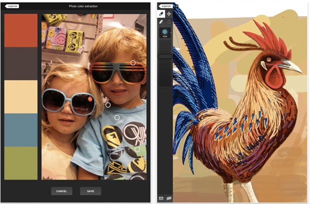 В Ideas вы сможете выбрать кисть необходимого размера и конечно рисовать можно с помощью Multi-Touch, присутствуют гибкие настройки масштаба холста. При работе с фотографией Ideas автоматом подберет цветовую палитру под цвета редактируемой фотографии. Сохранение истории и 50-уровневая отмена действий, а так же поддержка работы со слоями. После редактирования или рисования отправьте файл другу по почте в формате PDF или сохраните его во встроенном органайзере.