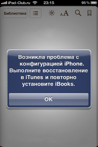 Алгоритм очень прост: при открытии книги iBooks пробует выполнить не подписанный код. Если это получается, то значит iOS с джеилбрейком и программа заявляет : «Возникла проблема с конфигурацией iPhone. Выполните восстановление в iTunes и повторно установите iBooks».