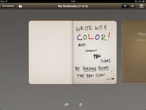 Сами настройки для рисования, к сожалению, довольно ограничены. Имеется всего три настройки толщины линии и шесть настроек цветов. Хотя, конечно же, стоит согласиться, что и этого вполне достаточно, ведь блокнот предполагает создание в первую очередь рукописных заметок, а не высокохудожественных произведений. Ведь главное достоинство программы — возможность хранить значительное количество рукописных текстов неограниченного объема. Вот почему планшетник IPad незаменим для хранения большого количества конспектов, записей, заменяющих целую стопу тетрадей и папок, и позволяющих пользоваться ими на лекциях, совещаниях, во время выступлений. Студенты могут хранить здесь неограниченное количество записей, а лекторы и руководители пользоваться своими лекциями и планами, не роясь в кипе бумаг. Для студентов один планшетник IPad с программой Penultimate заменит целую стопку тетрадей по разным предметам. Хотя конечно же, стоит признать, что полностью заменить обычную бумагу по точной передаче письма такой планшетник не в состоянии. Виной тому сенсорный экран, качество которого, конечно же, требует доработки.