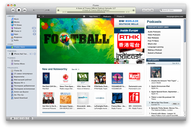 Для российских любителей подкастов в русском iTunes Store праздник. Теперь помимо программ App Store открыта подписка на ежедневные обновления новостных, спортивных, развлекательных, музыкальных и прочих подкастов. Однако знание языков в русском iTunes Store не повредит, т.к. большинство представленных подкастов на иностранных языках.