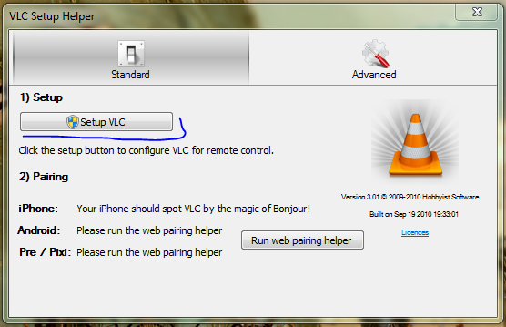 4. Запускаем расширение и нажимаем «Setup VLC»