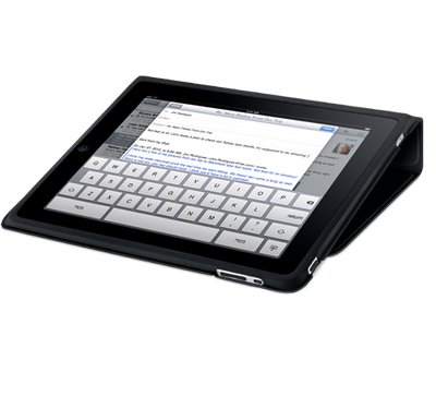 Виртуальная клавиатура большая, но, конечно же, много на экране не попечатаешь. А предлагаемая Apple док-станция позволяет устанавливать iPad только в вертикальном положении. Как вариант, компания подготовила и стильную кожаную обложку, способную исполнять роль подставки для просмотра видео и набора текстов.