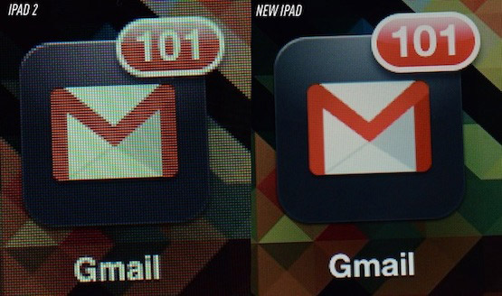The Wall Street Journal не советует владельцам iPad 2 и iPad смотреть на дисплей нового планшета потому, что после такого изучения будет казаться, что ваш iPad пестрит пикселями и очень блеклый, что может привести к депрессии. Глядя на фотографии это становится очевидно.