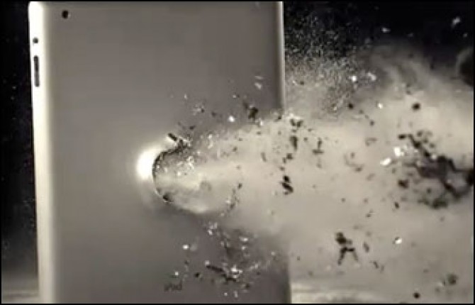 Ребята расстреляли перед объективом высокоскоростной камеры несколько планшетников iPad 2. Зрелище получилось отличное.